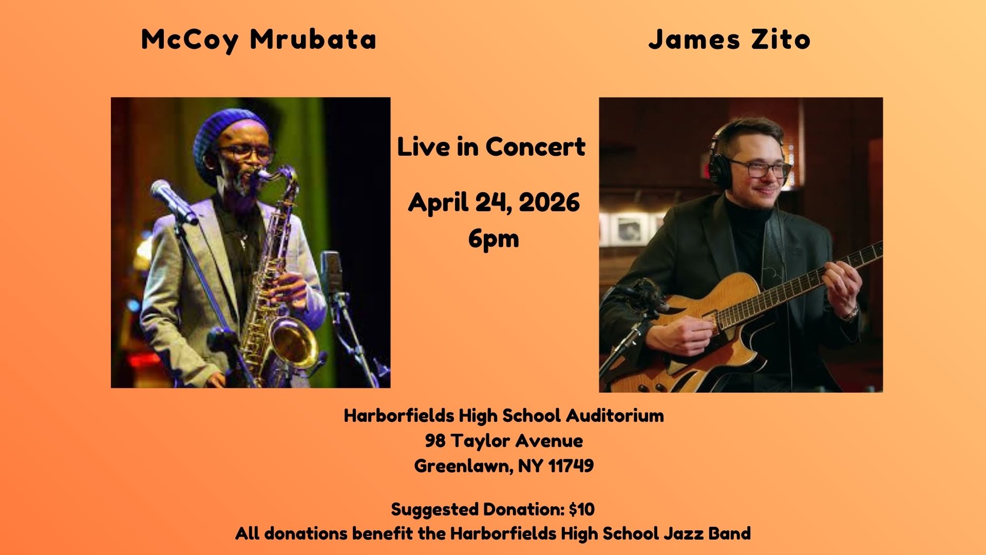 On April 24th at 6:00 p.m., Harborfields High School will host a special live performance by internationally acclaimed South African jazz saxophonist McCoy Mrubata in the high school auditorium. While no tickets are required, guests can make a donation at the door, with all proceeds benefiting the Harborfields High School Jazz Band. This is a unique opportunity for our community, as Mrubata is performing at only two venues in New York: Jazz at Lincoln Center and Harborfields High School. We encourage all members of our community to attend this exceptional event and support our student musicians!