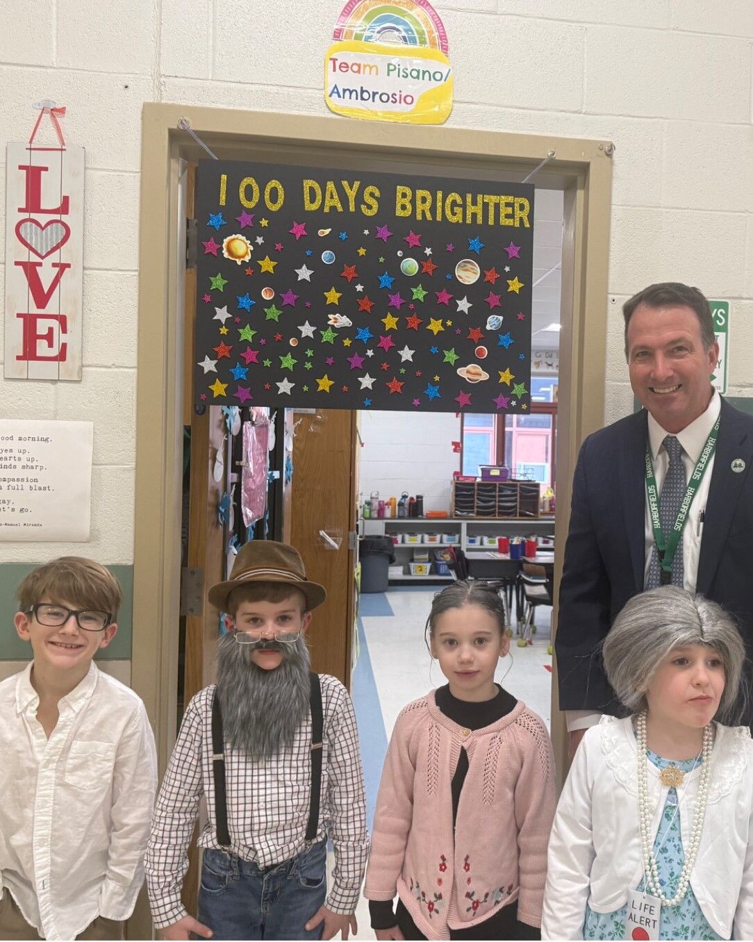 Pictured above are some of our 100-year-old students (Teddy, Owen, Lizzy, and Everly) at Washington Drive who dressed up to celebrate the 100th day of school!