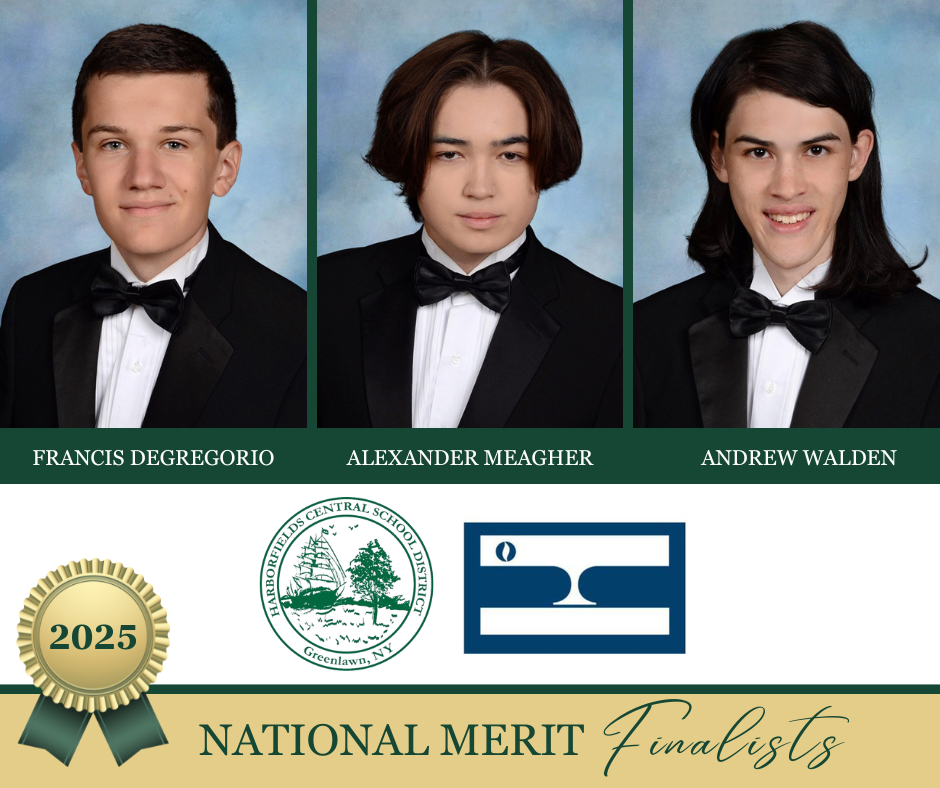 We are thrilled to announce that after being named National Merit Semifinalists in September, three Harborfields High School seniors have advanced to Finalist standing! This prestigious accomplishment places these students among the top 1% of high school seniors nationwide!