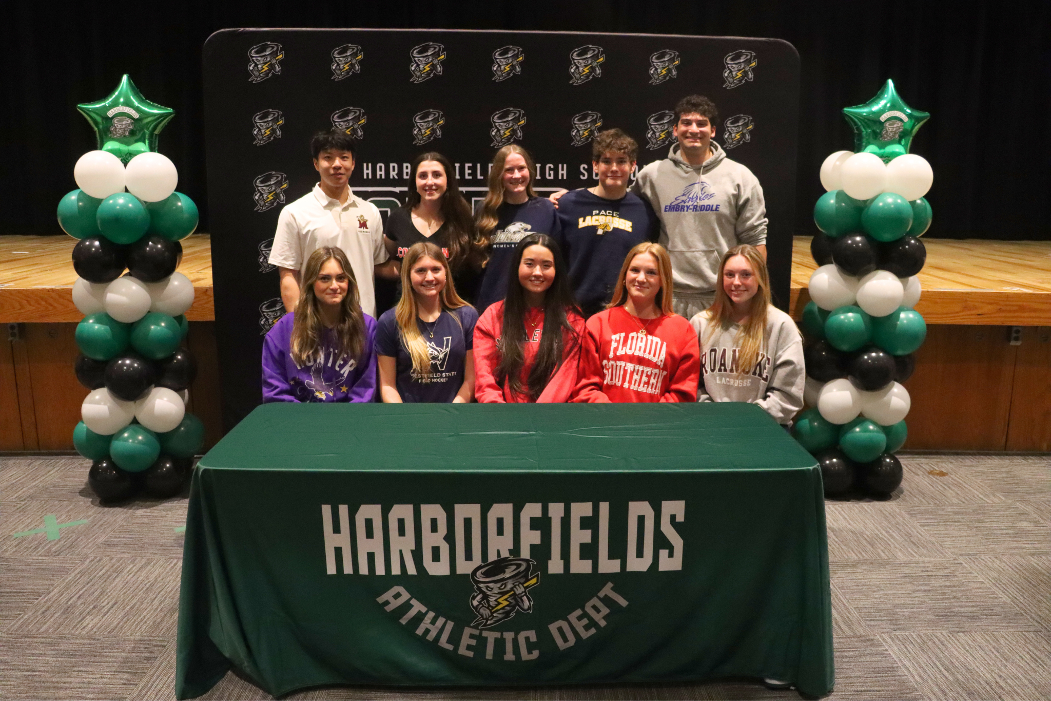 Congratulations to the 11 senior athletes from Harborfields High School who committed to playing a sport at the collegiate level! Mr. Franco brought families, coaches, and community members together to celebrate these students at a signing night on Wednesday, March 4. We also welcomed back Harborfields Alumni Nick Caccamo ‘20 to speak about his experience playing D1 Lacrosse at Syracuse University.